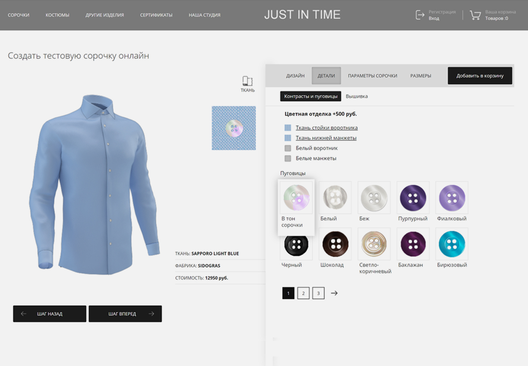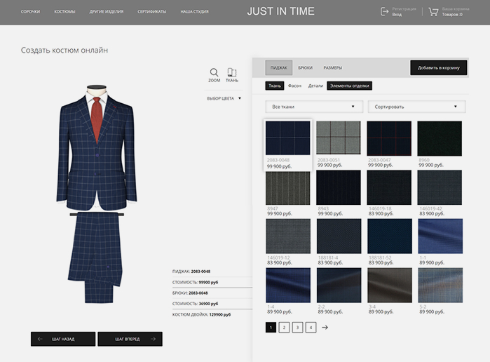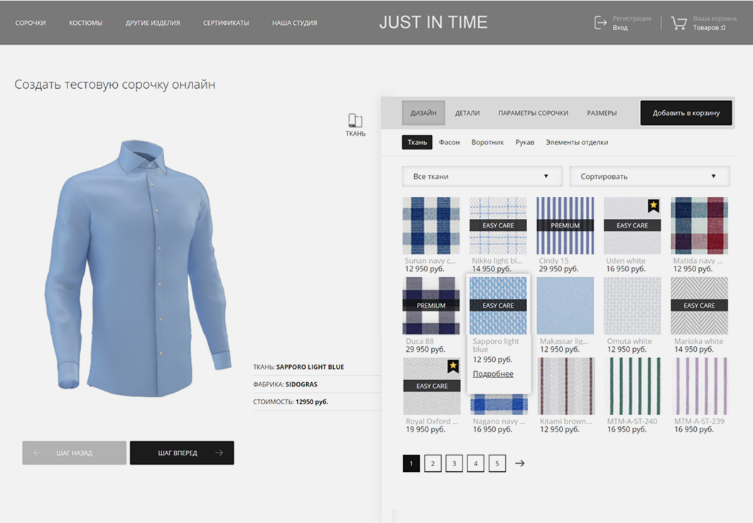 Клиент хотел создать удобный сервис онлайн-конструктора, где пользователи могли бы настраивать каждую деталь сорочек и костюмов под свои предпочтения. Сроки реализации были сильно ограничены предстоящим промо-периодом.