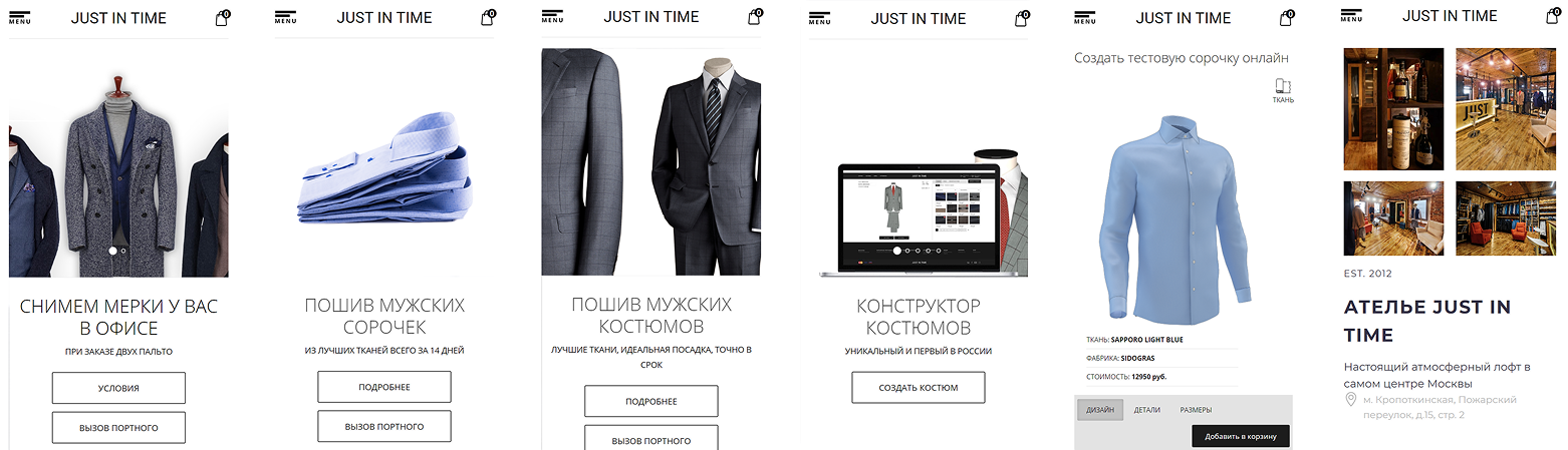 Ателье JUST IN TIME — премиальное ателье по индивидуальному пошиву мужских костюмов и сорочек. Клиенты — мужчины, которые ценят стиль и комфорт. Компания делает акцент на безупречном крое, качественных тканях и уникальном подходе.