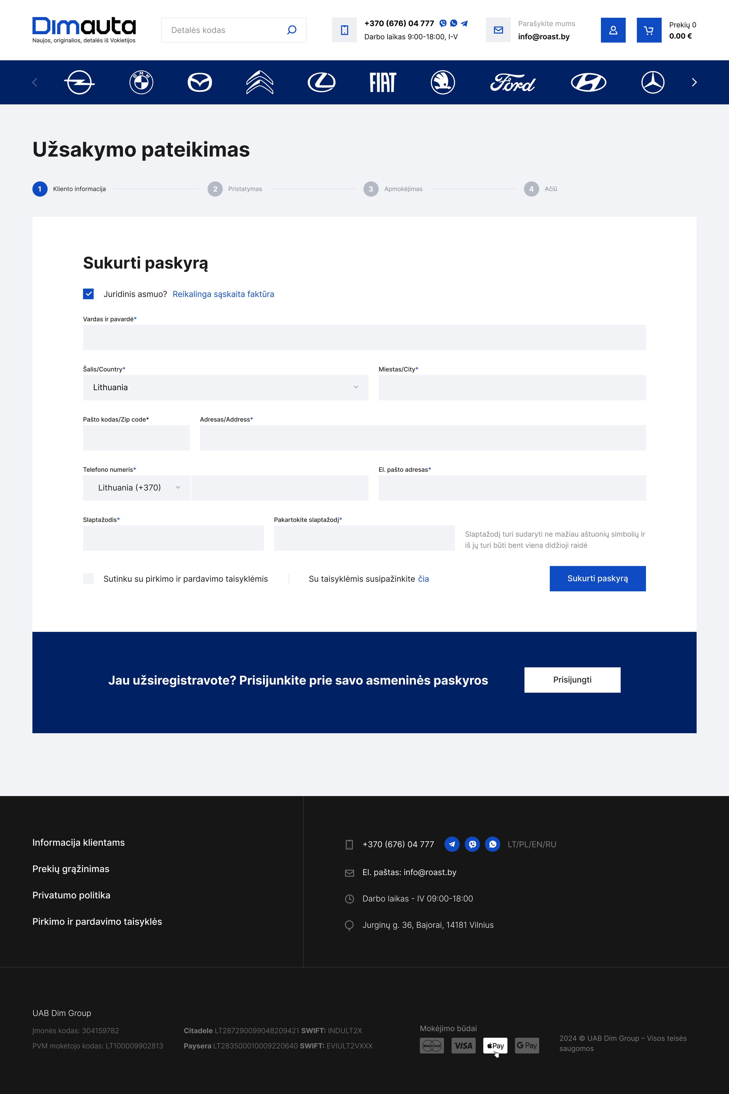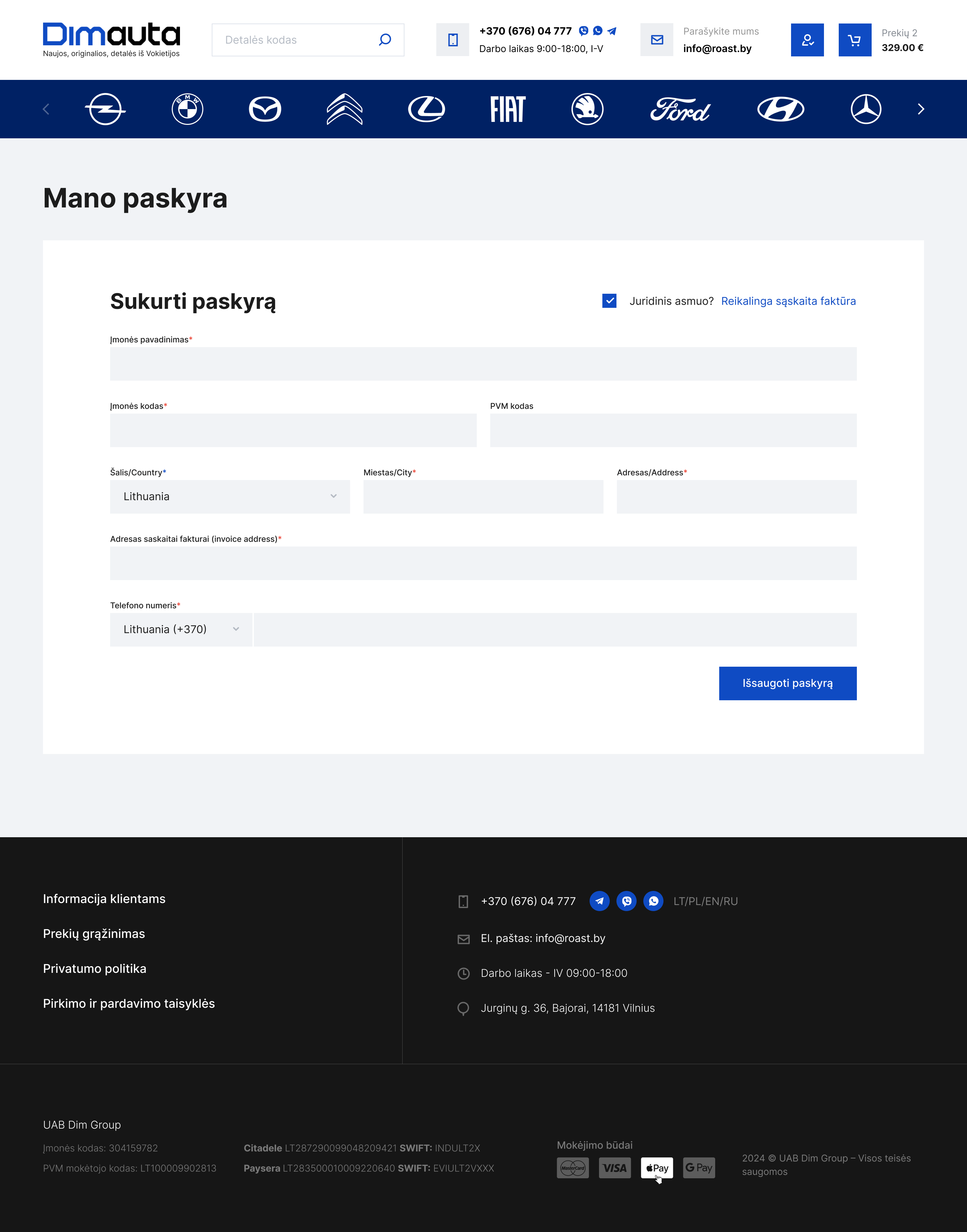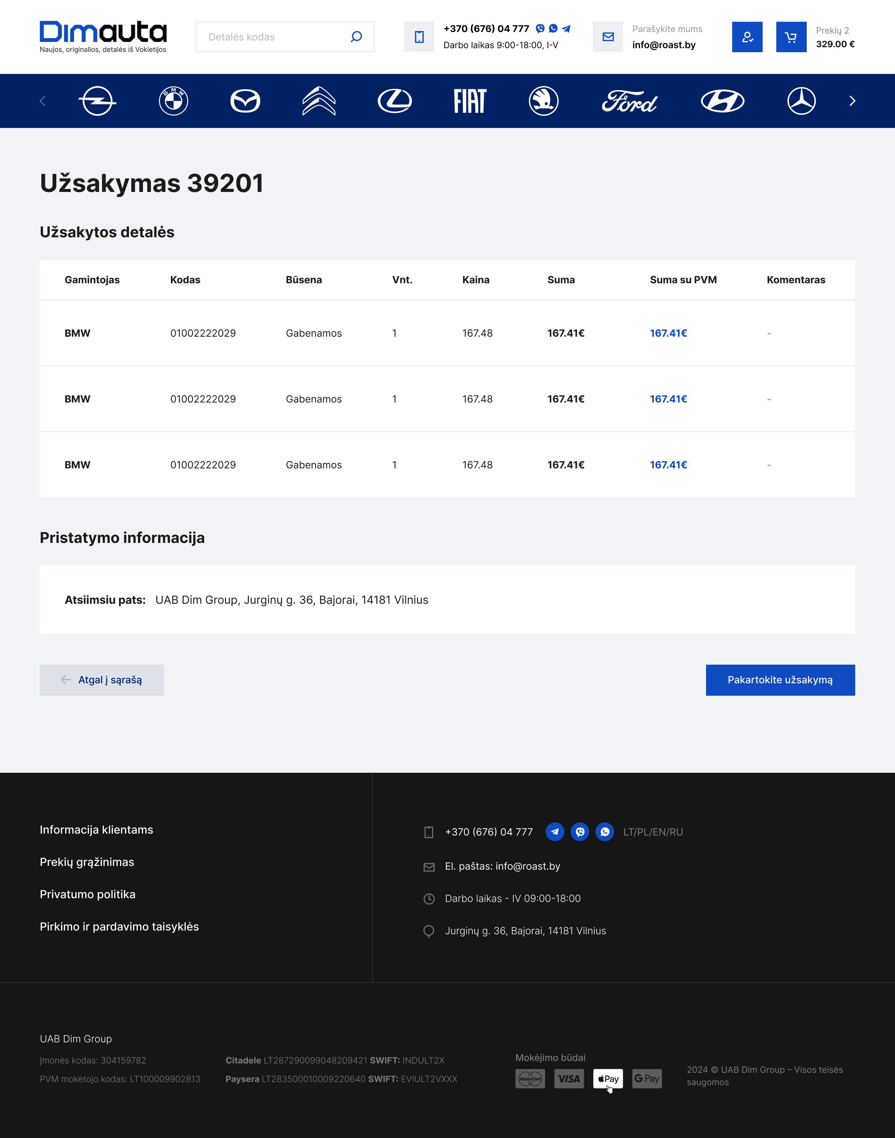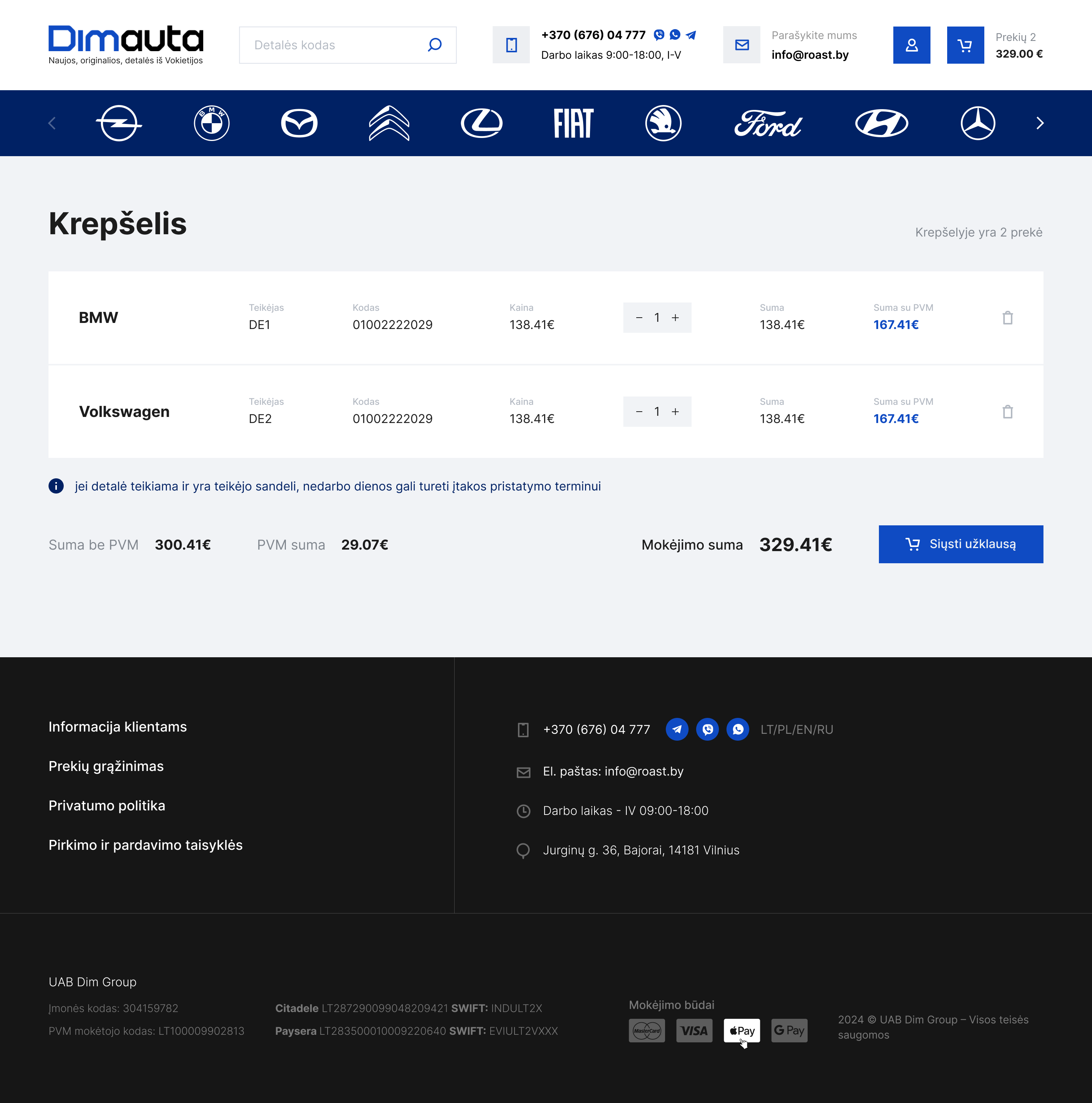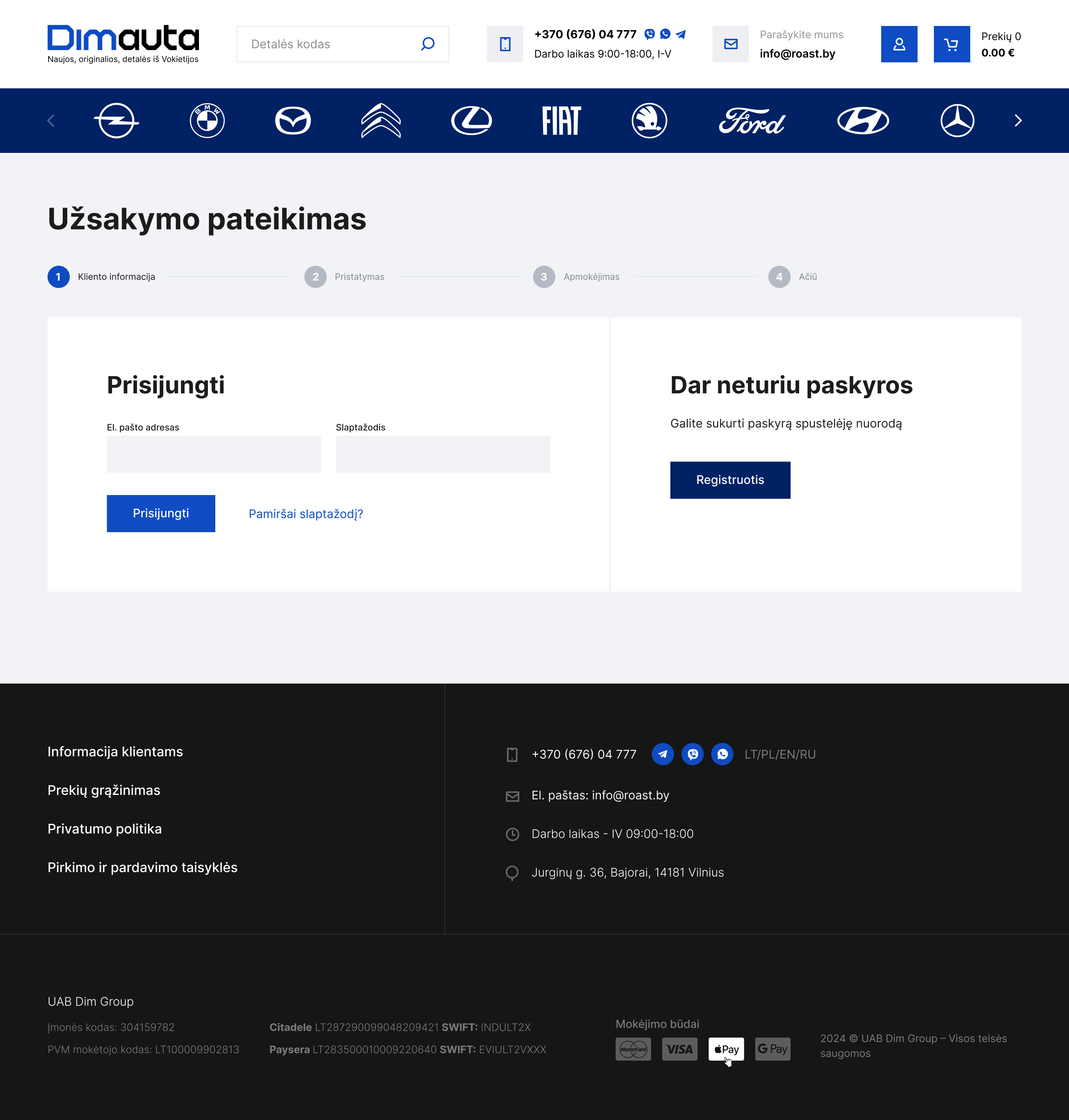 Dimauta — литовский онлайн‑магазин, специализирующийся на продаже оригинальных автомобильных запчастей