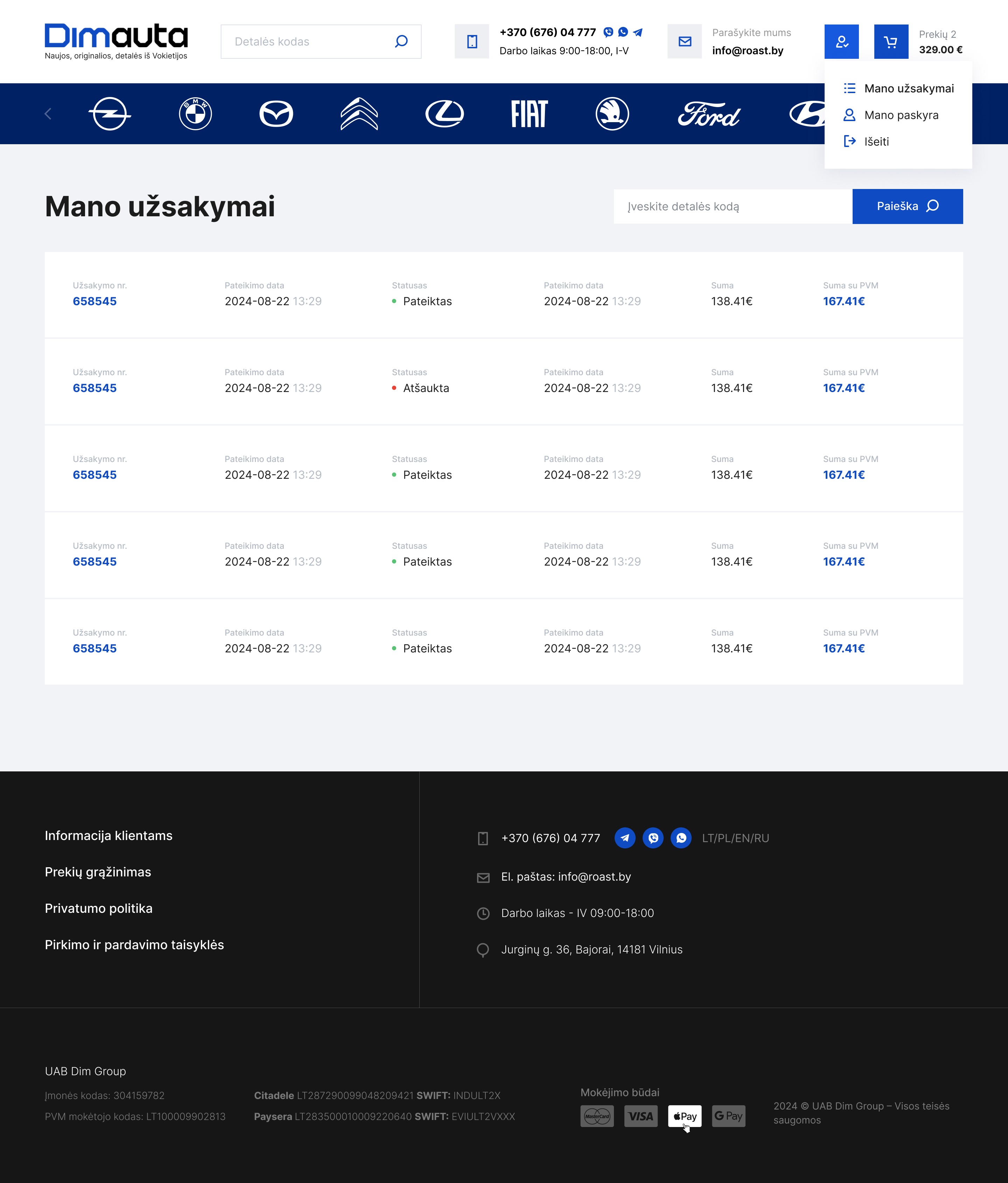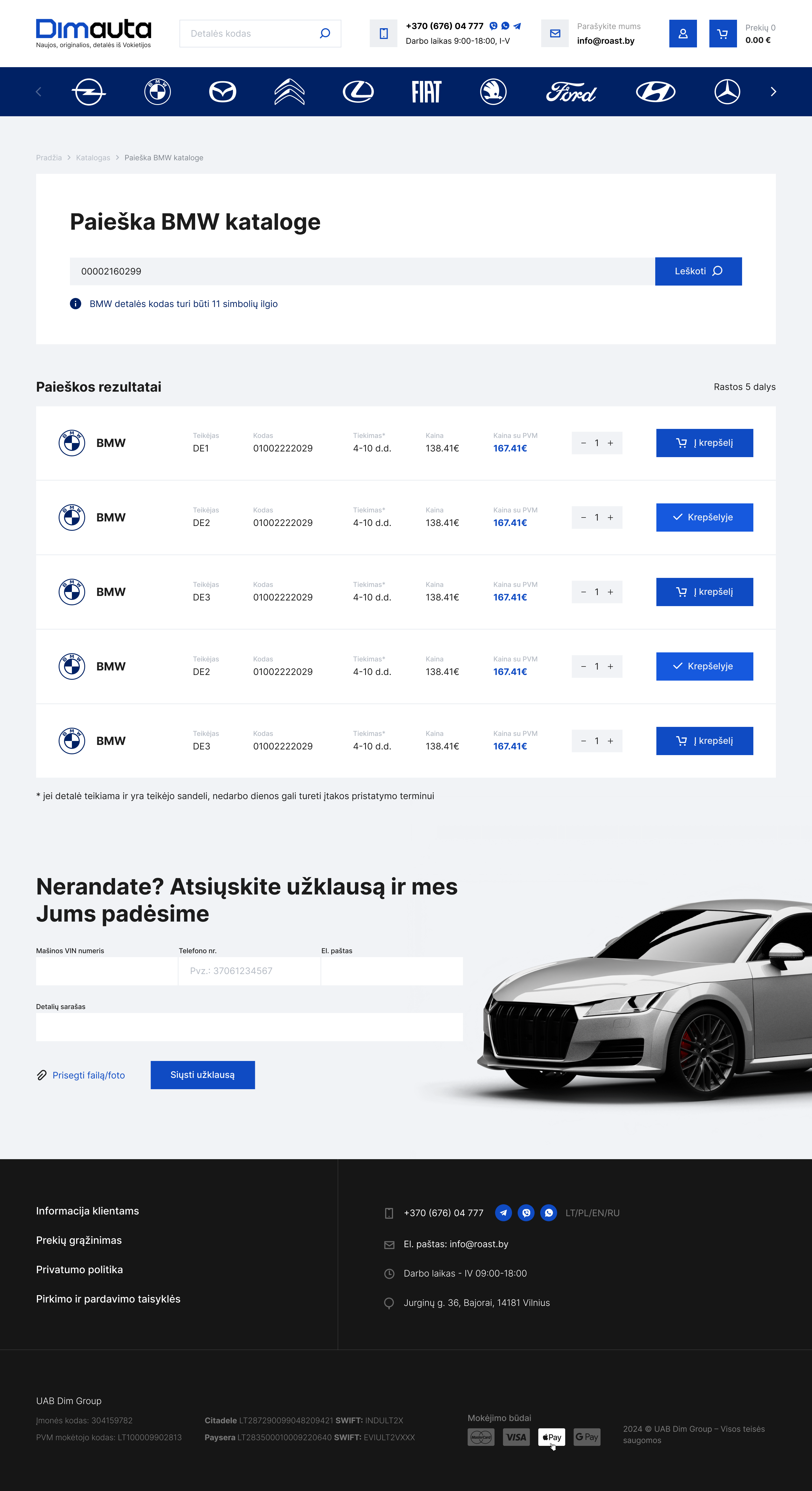 Редизайн изменил не только внешний вид, но и сам подход: dimauta.lt стал удобным инструментом, который помогает в совершении покупки, а не отвлекает.