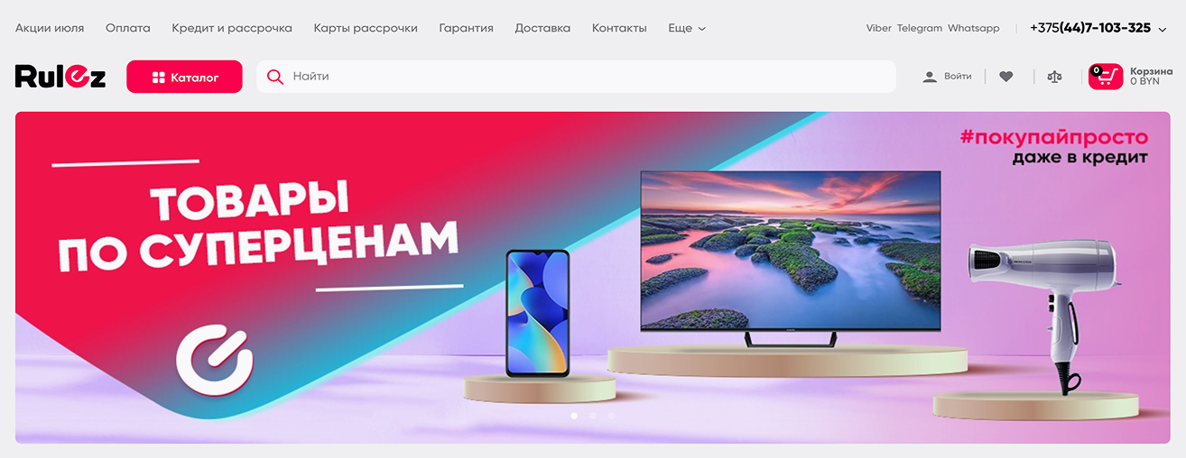 Rulez.by — это интернет-магазин качественных товаров по выгодным ценам. На рынке более 10 лет. Предлагают самые разные товары: от ноутбуков до бассейнов.